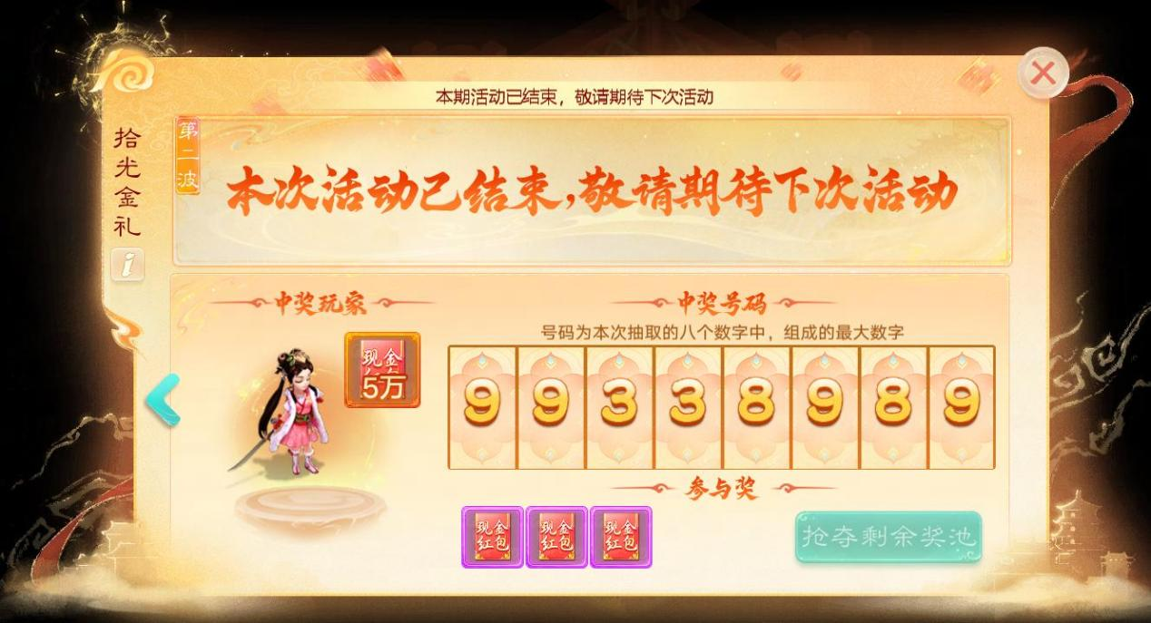11)参加每一波抽奖的玩家,若未中奖,可在当前波次抽奖后,参与剩余奖池的抢夺瓜分。