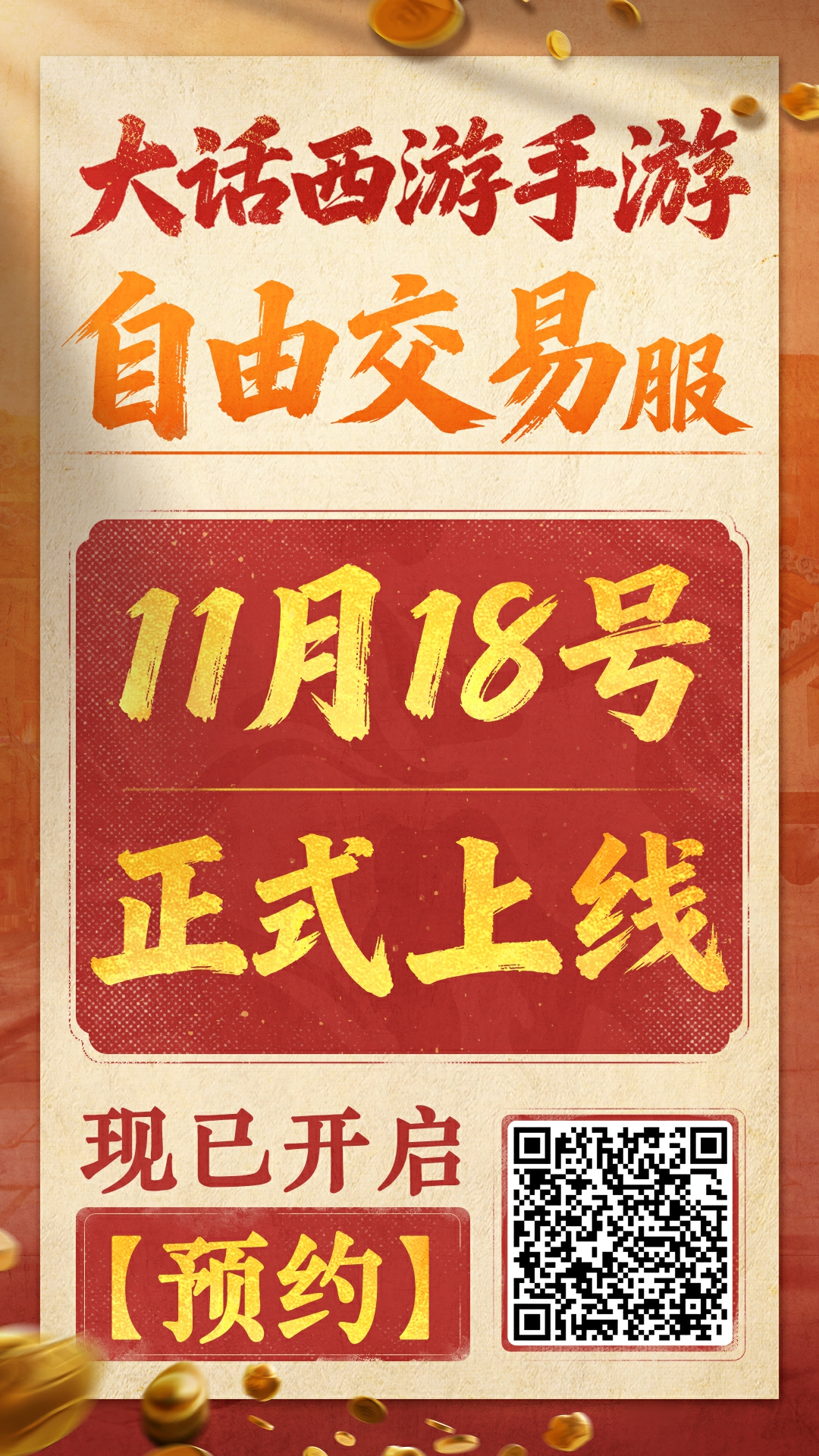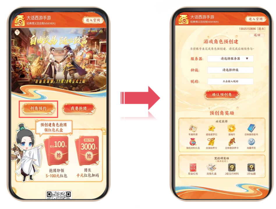 千呼万唤始出来!大话手游自由交易正式服,今日(11月10日)正式开启预约创角,11月18日(周二)正式上线!