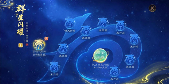 4)长安新增共话十年纪念碑-群星闪耀,已经闪耀星空的少侠,将在全服随机显示,点击纪念碑也可以随时打开星空观看群星;