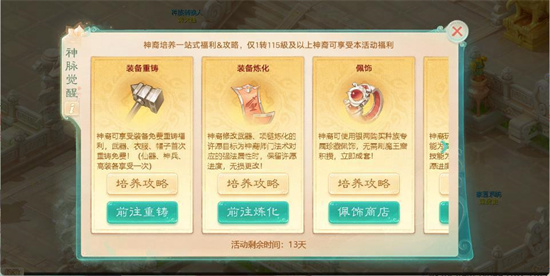 为了神裔少侠能更快更容易上手,我们特为神裔准备了“神脉觉醒”活动,该活动为神裔的一站式福利&攻略;