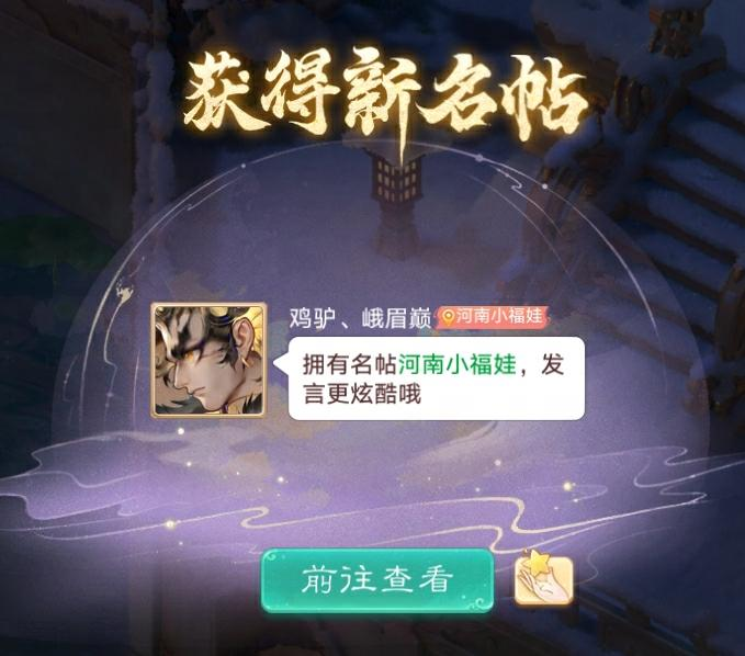 同城定位是河南城市的少侠,将获得60天的城市独有限时名帖-河南小福娃,开启快乐旅程。